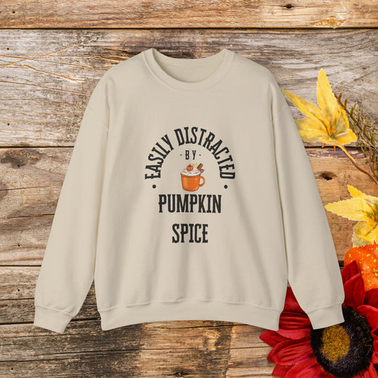 Easily Distracted by Pumpkin Spice Crewneck Sweatshirt - Cozy Fall Favorite
